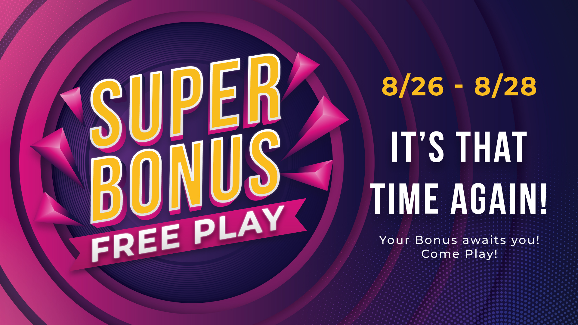 It's that time again. Your Bonus awaits you! Come Play!