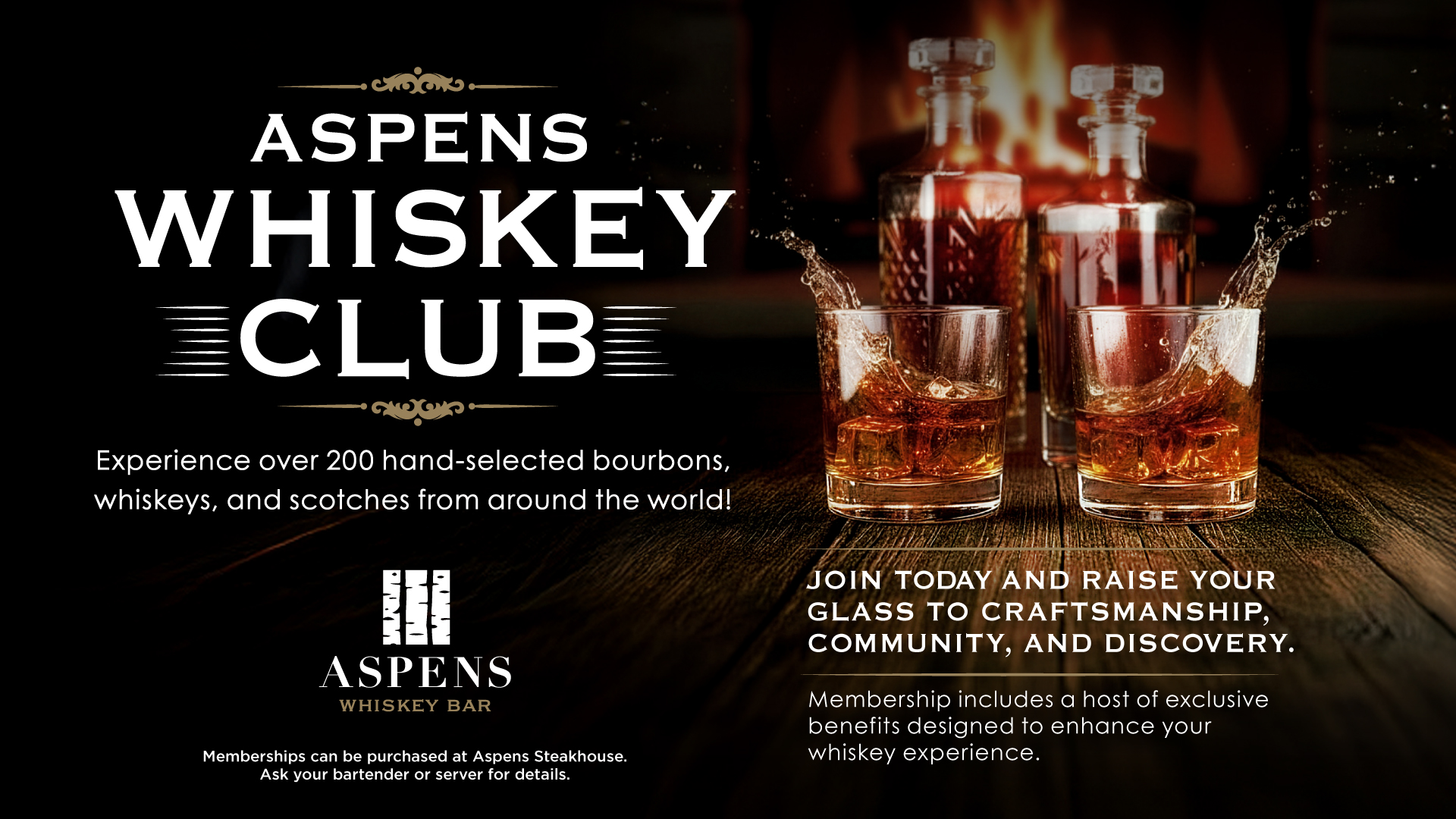 Join Today! Aspens Whiskey Club | Over 200 Hand Selected Bourbons, Whiskeys, and Scotches. Individual pours are available. Located in Elko, NV at Aspens Steakhouse.