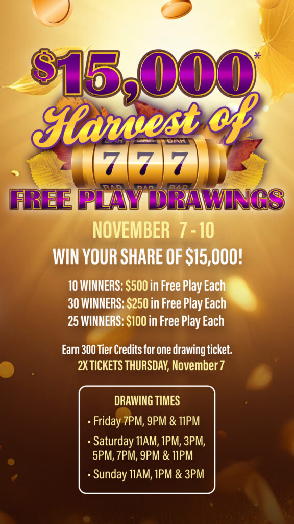 $15,000 Harvest of Free Play Drawings